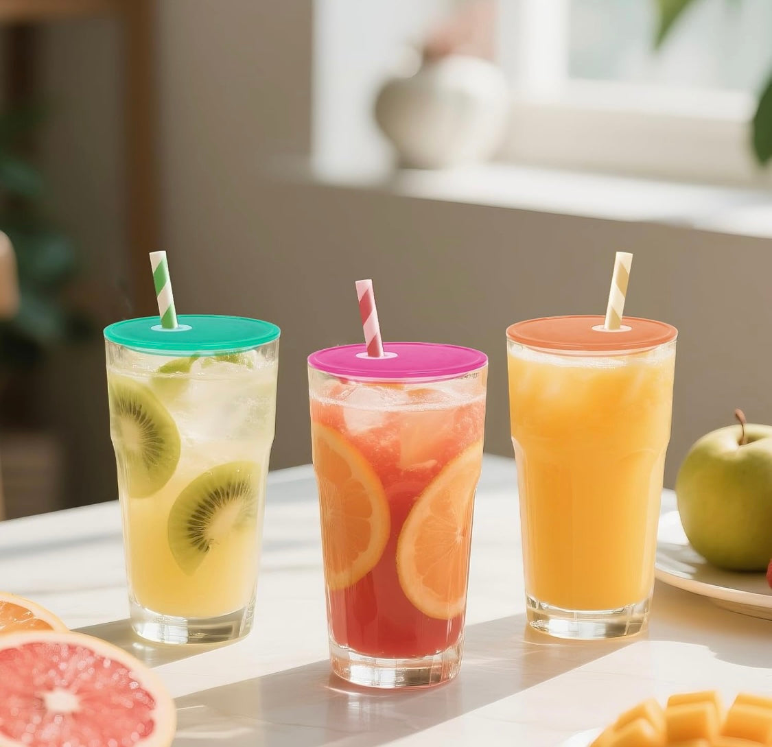Additional Acrylic Lids for 16 oz Glass Cups, Colorful Glass Cup Lids Replacement, Spill-Proof Reusable Tumbler Lids