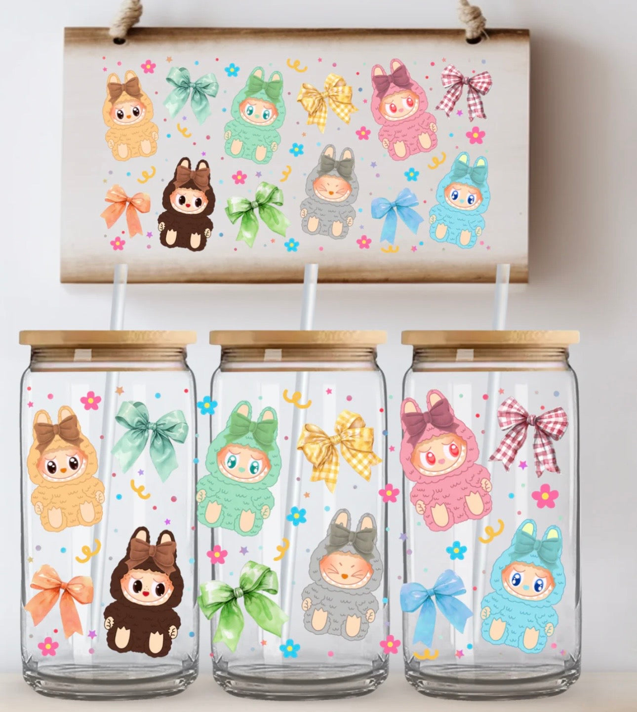 Add a touch of playful charm to your custom tumbler or journal with our Sweet Bow Babes UVDTF Decal. This adorable design features the cutest cozy characters dressed in soft pastel colors and surrounded by delicate bows and tiny florals for the ultimate sweet aesthetic.