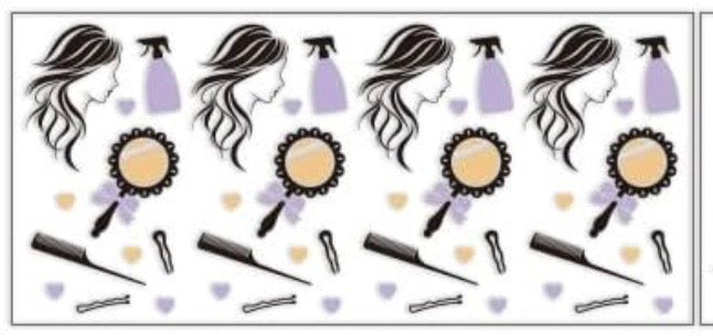 Soft, stylish, and made for the beauty boss—this UVDTF decal features a chic pattern of flowing hair silhouettes, mirrors, styling tools, and delicate heart accents in soft lavender tones. It’s the perfect blend of feminine energy and salon-life hustle.