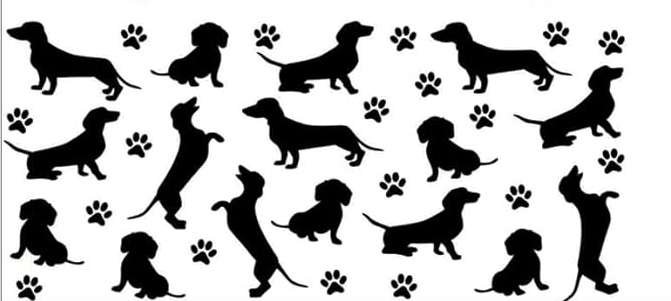 UV DTF Decal featuring Dachshund silhouettes and pawprints.