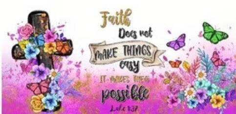 Bold, colorful, and full of encouragementāthis UVDTF decal is a vibrant reminder that āFaith does not make things easy, it makes them possibleā (Luke 1:37). Featuring a beautifully detailed cross adorned with bright florals and surrounded by whimsical butterflies, this design radiates hope, joy, and unwavering faith.