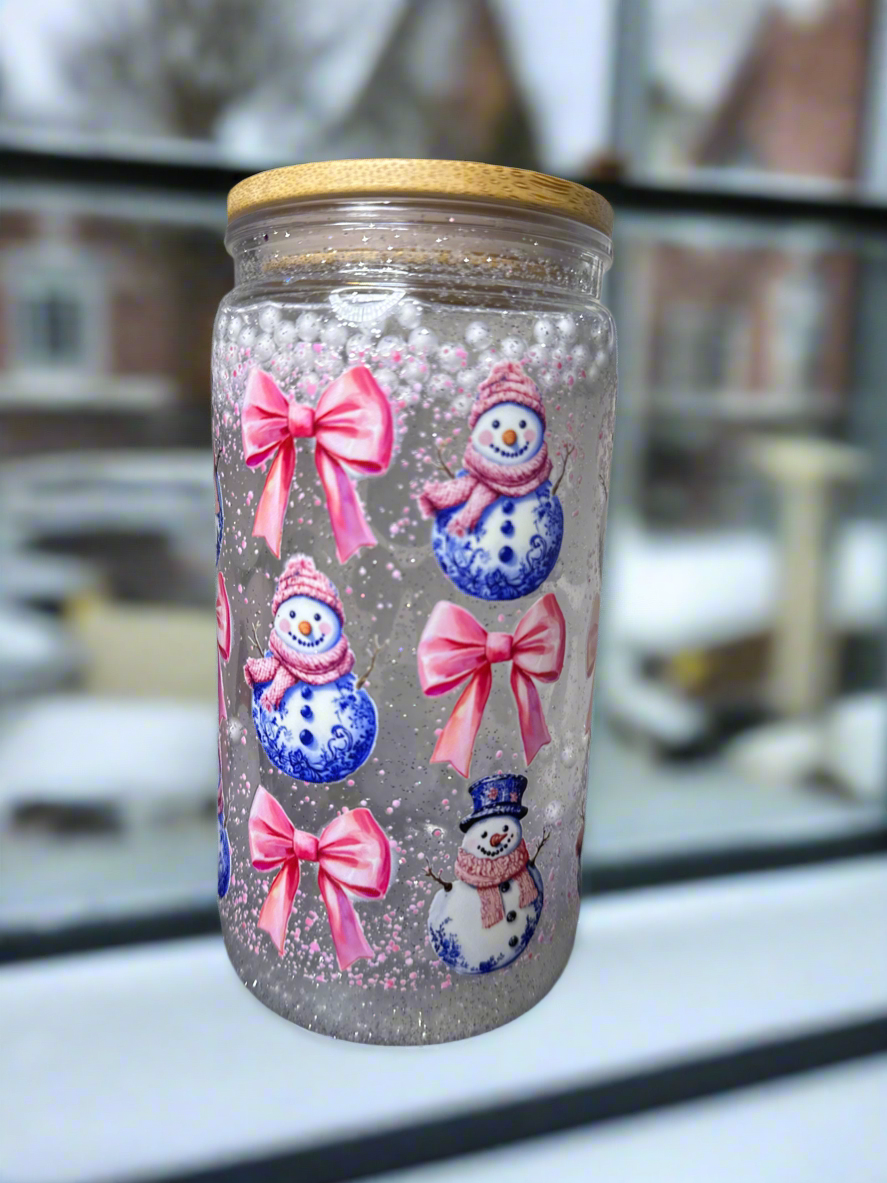 The frosty flow is a solution that is a frost look-alike containing transparent, white, pigment and fine glitter. A small amount of a phone balls are added to look like snowballs.