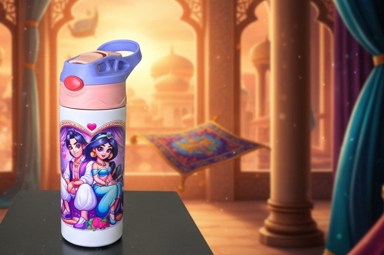 12 ounce, stainless steel, featuring an animated Prince and princess themed decal.