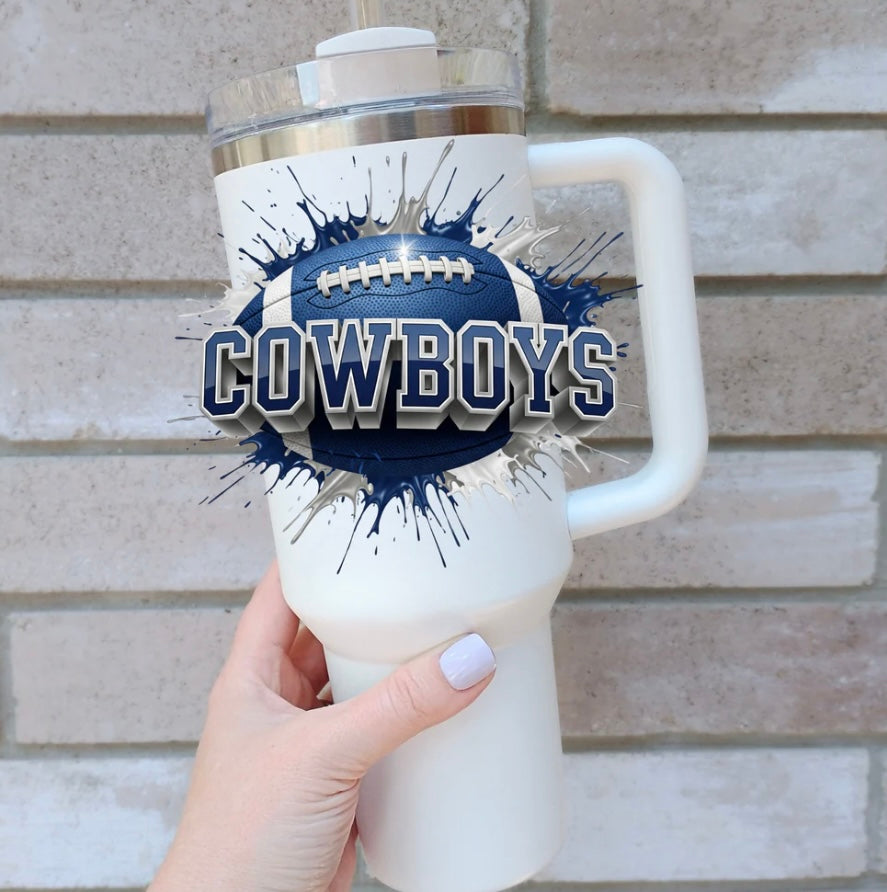 UVDTF Decal picturing the Dallas Cowboys NFL logo and football with a splash of water color in the team colors.